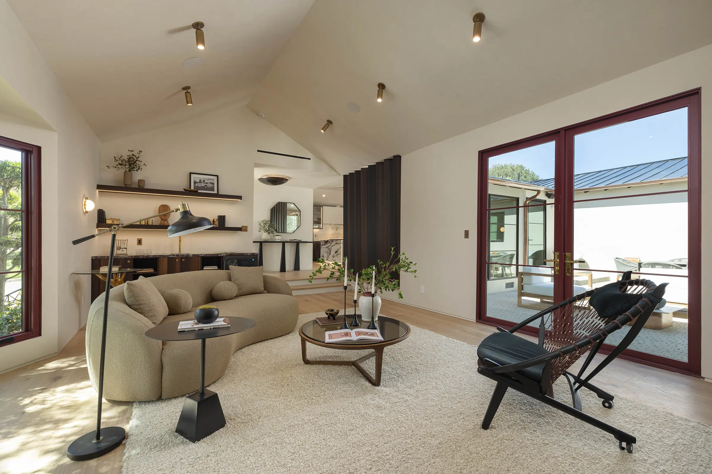 Structural modifications were implemented to achieve a clean, open floor plan, allowing the primary living spaces to flow seamlessly and connect directly to the exterior. The design emphasizes a strong indoor-outdoor relationship, using natural light and thoughtful transitions to extend the perceived scale of the home.