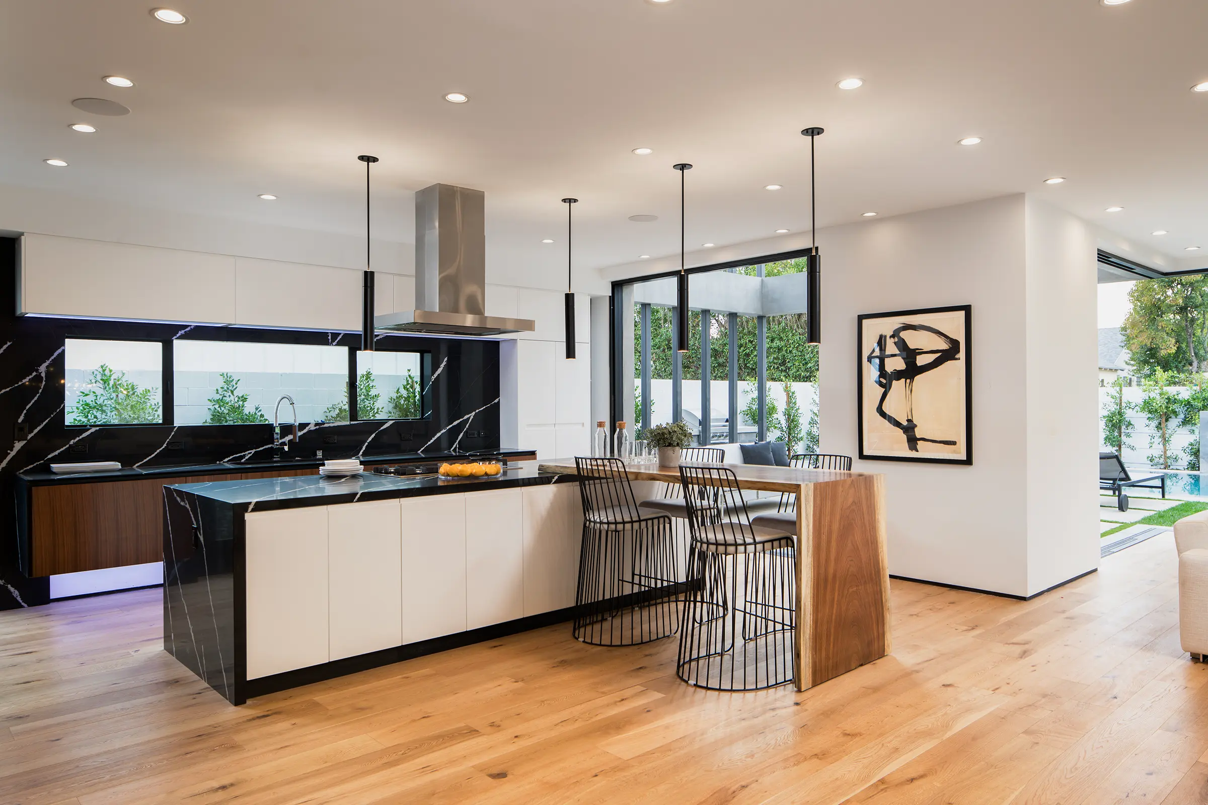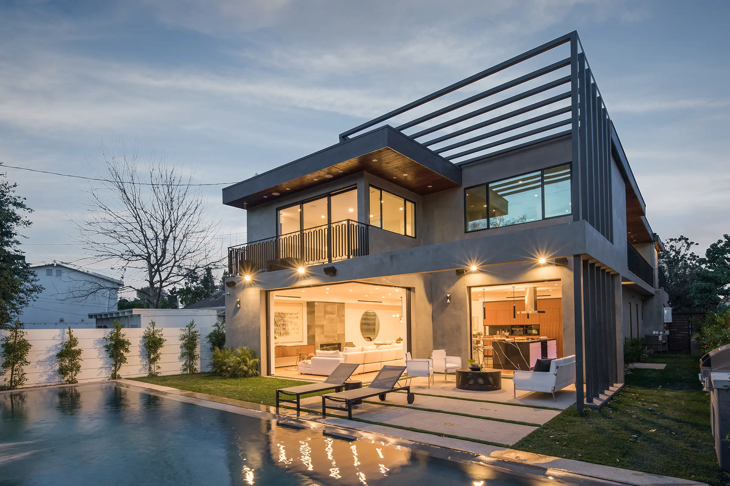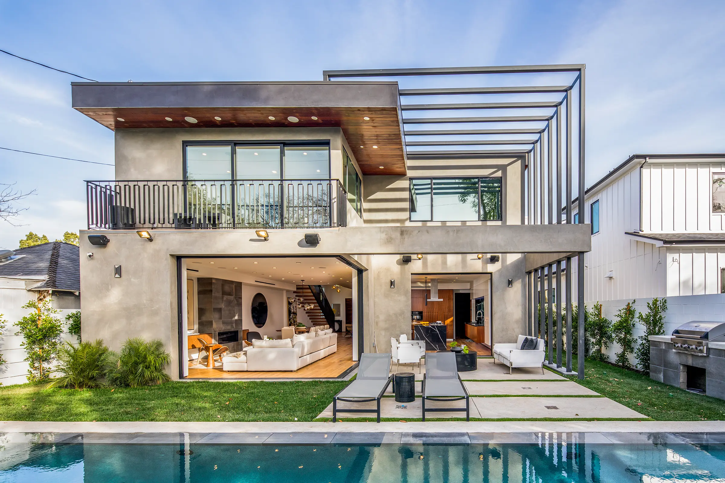 Sherman Oaks 1 is a 3,749 square foot contemporary ground-up residence designed with a focus on clean architectural lines, functional planning, and cohesive execution. The home includes five bedrooms, with a layout developed to balance open living areas and private spaces while maintaining clarity in circulation throughout.